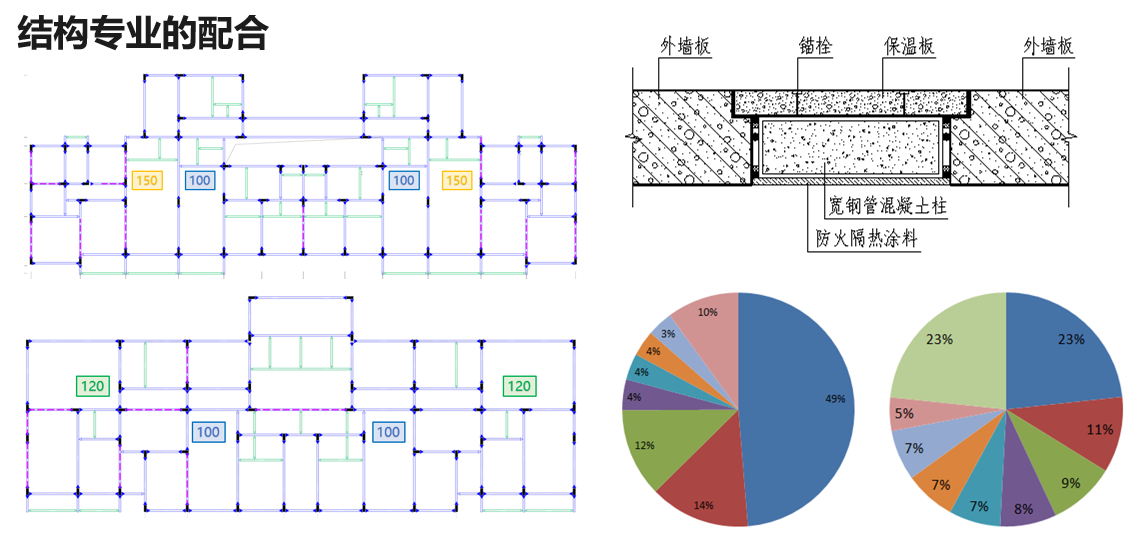 其次是選定價格預期。一般裝配式鋼結構住宅的價格比現澆混凝土的要高一些,建設單位有一定的心理預期,會根據價格差別選擇產品的檔次定位。這決定了產品的材料、建筑構造和施工方式的差異。在這個過程中,會測算裝配率是否滿足要求,會決定樓板、墻板、裝配式裝修等新技術新產品的應用范圍,會考慮產品采購的價格和運輸成本等。房企項目有個特點,在滿足裝配率的情況下,盡量采用技術成熟、價格透明的傳統材料與產品。