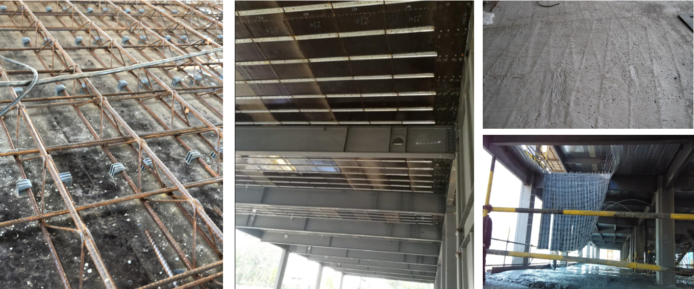 樓承板的施工一般專業廠家施工,需要控制與鋼結構的進度配合,施工中的塔吊協調,鋼結構栓釘焊接,與水電專業的配合以及施工安全措施,避免施工中出現撓度過大、樓板裂縫、保護層不夠、堆載坍塌等質量事故。