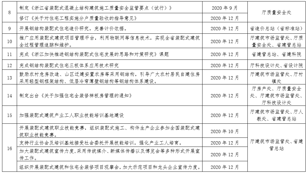 2020年3月2日,浙江省住建廳發布《2020年全省建筑工業化工作要點》(下文簡稱為《要點》),該《要點》進一步明確并分解了2019年7月浙江省提出的相關目標。