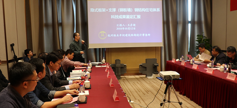2018年10月12日,浙江省技術經紀人協會在杭州組織召開了由鐵木辛柯研發的“隱式框架+支撐(鋼板墻)鋼結構住宅體系”科技成果鑒定會,鑒定會由清華大學郭彥林教授、全國勘察設計大師王立軍教授級高工、浙江省院楊學林教授級高工、蘇州科技大學顧強教授、江蘇省院總工金如元研究員、浙大院總工肖志斌研究員、四川省院常務副總工趙仕興教授級高工等多位知名專家學者組成鑒定專家委員會。鑒定專家聽取了研發總結、試驗檢測、用戶意見和科技查新等報告,查看了樣品資料,經過深入質詢和討論,最后一致認為“研究成果總體達到國際先進水平,其中寬鋼管混凝土柱的承載力計算方法、節點構造及設計達到國際領先水平”,同意通過鑒定。
