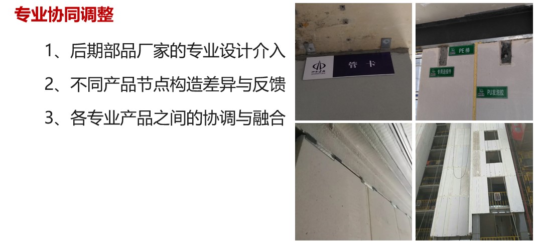 有些部品部件在設計時只提出了類型和技術標準,并不能指定廠家。總包在部品招標完成后,廠家會介入深化工作。比如墻板,不同廠家提供的連接節點、拼接處理等不同,可能與鋼結構、裝配式裝修等專業有修改的要求,這就需要不同專業之間互相協調,甚至原設計參與補充圖紙或修改圖紙,共同解決可能出現的各種調整問題。