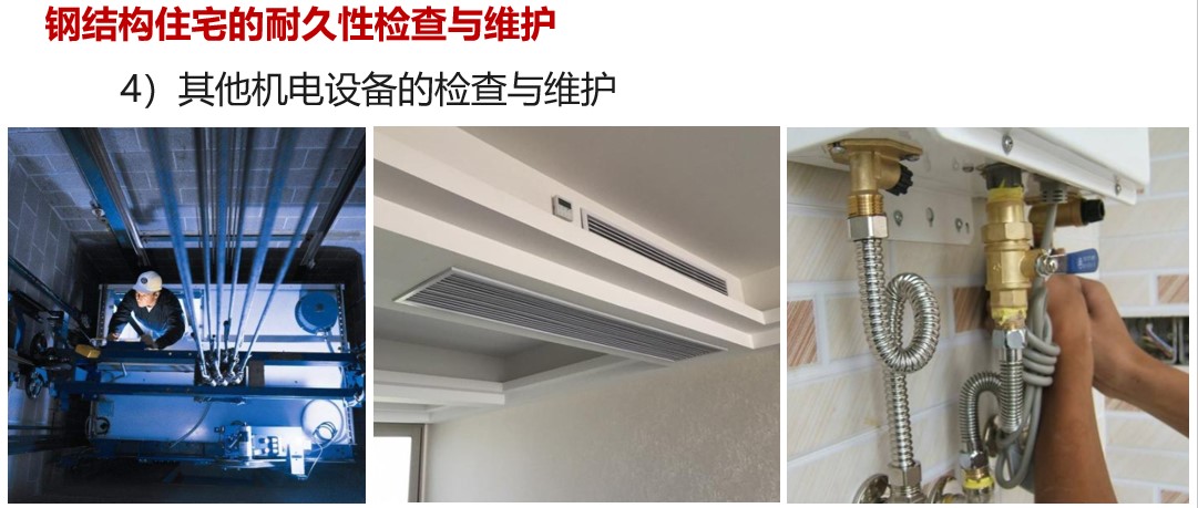三是鋼結構住宅的耐久性檢查與維保。任何產品在服役期內,都面臨耐久性檢查與維護保養問題。傳統住宅也有檢查與維保問題。鋼結構住宅中,基礎、主體結構、主要墻體等,在全壽命周期內如果沒有經過較大的地震損壞,按現有規范質量要求,是不用經常檢查維保的。鋼結構住宅的耐久性檢查與維保主要有以下幾個方面。