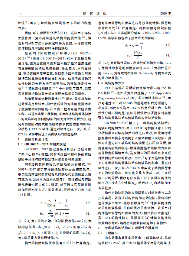 考慮整體和構(gòu)件幾何缺陷的隱式框架-支撐結(jié)構(gòu)動(dòng)力彈塑性二階效應(yīng)分析[全文]